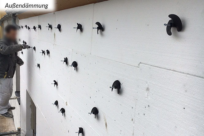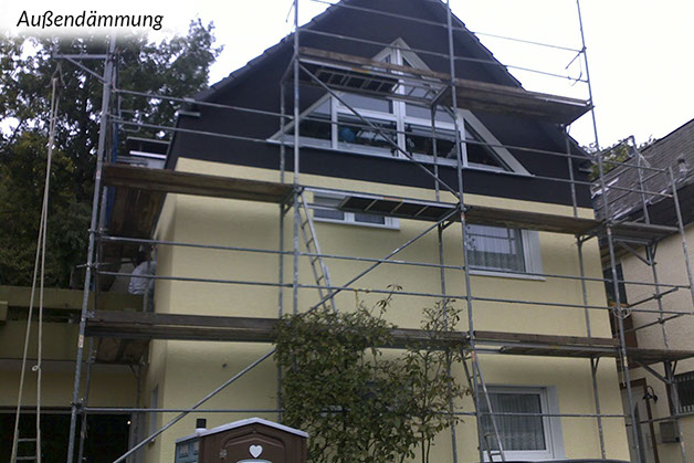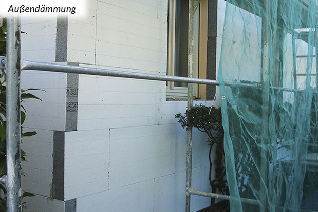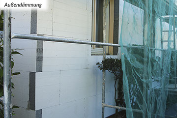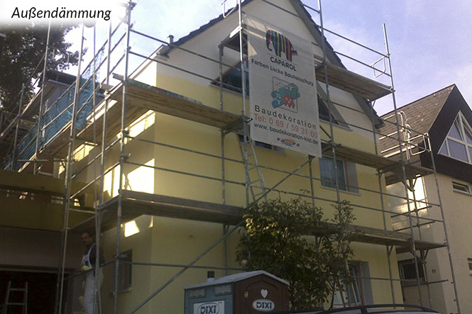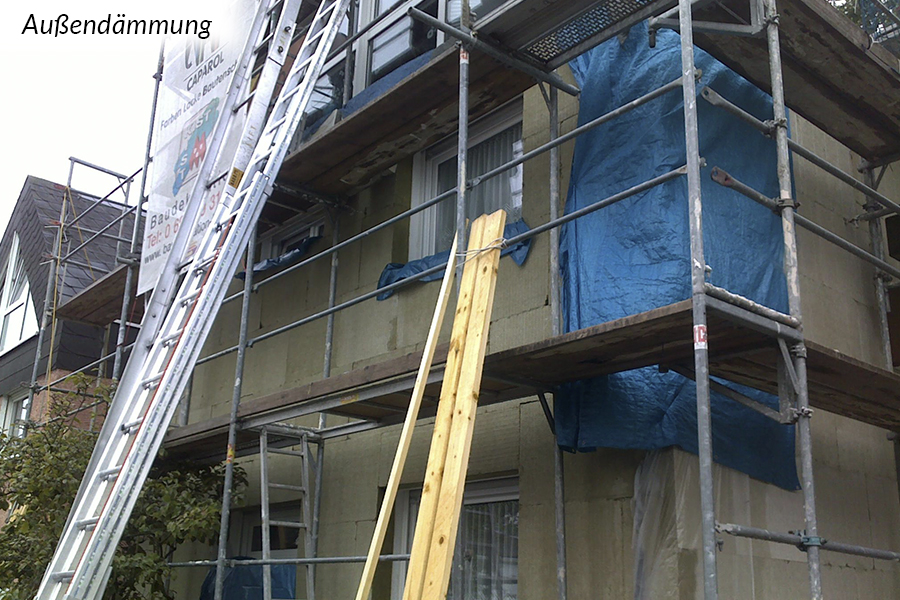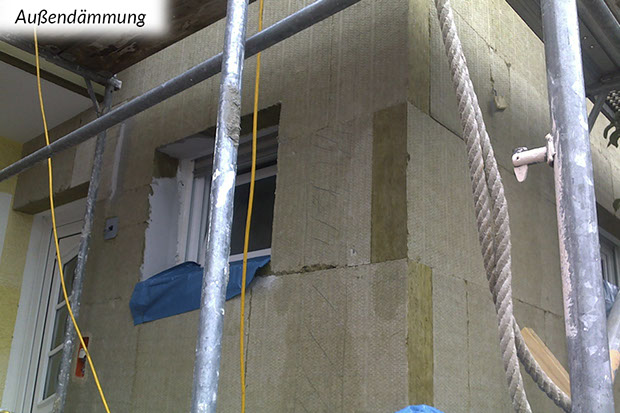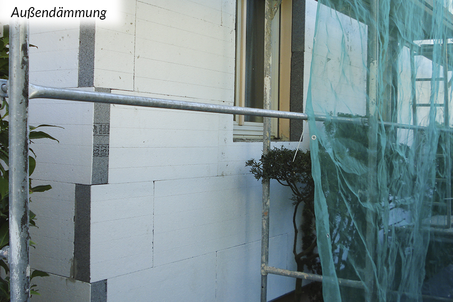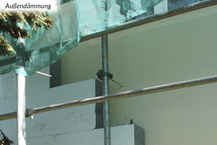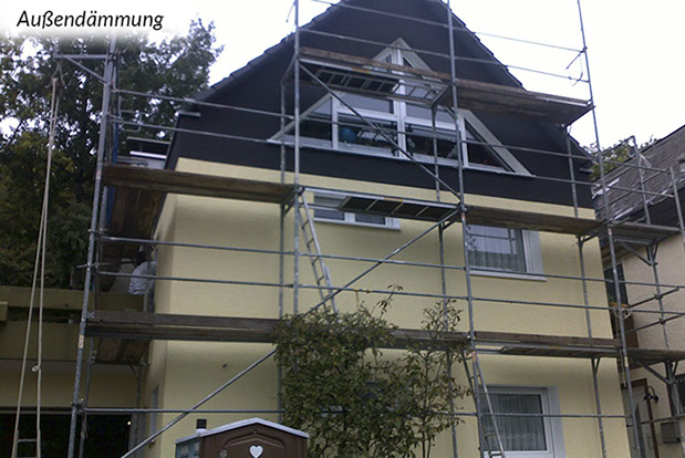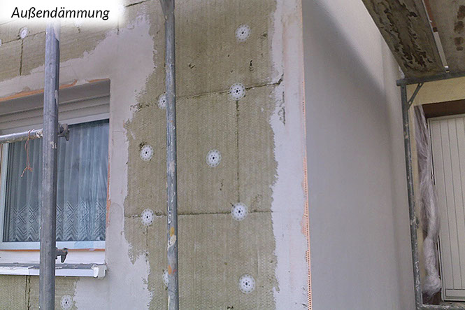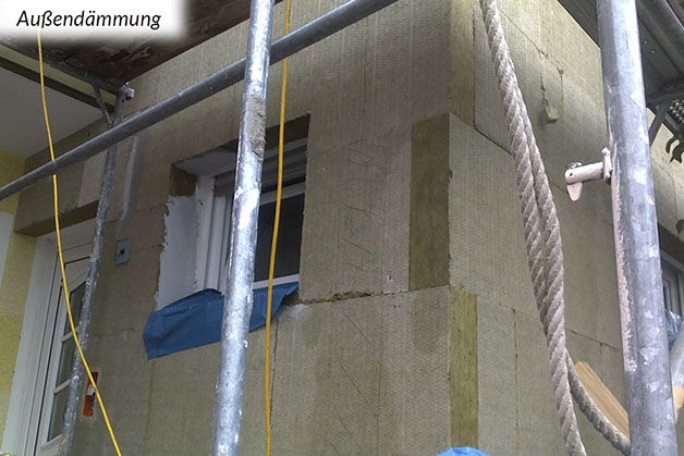 Grundsätzlich sind Außendämmungen die bauphysikalisch beste Art zu dämmen. Dabei werden von außen Dämmungen an die Wand- oder Dachkonstruktion angebracht. Die innen (raumseitig) liegenden, meist tragenden Bauteile werden auf diese Weise zum einen vor Witterungseinflüssen geschützt und zum anderen wird die Gefahr von Tauwasser und damit Schimmelpilzbildung in der Regel ausgeschlossen und Kältebrücken vermieden.